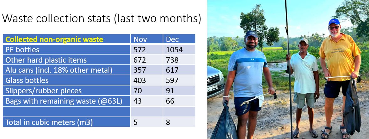 The Wetland Watch celebrated its birthday in December 2023. Seven years of daily cleaning activities in and around the Thalangama and Averihena lakes! We are very grateful to all private sponsors who help us financing our casual staff.