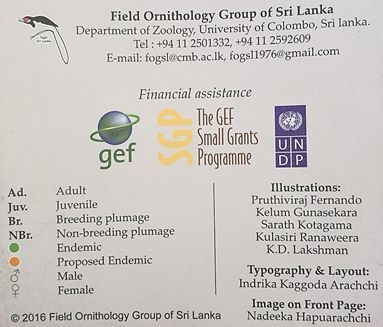 FOGSL is a non-profit, non-governmental organization attached to the Department of Zoology, University of Colombo, dedicated towards birding, ornithology, and conservation of nature. It has a rich history of publications, from field guides to children books.